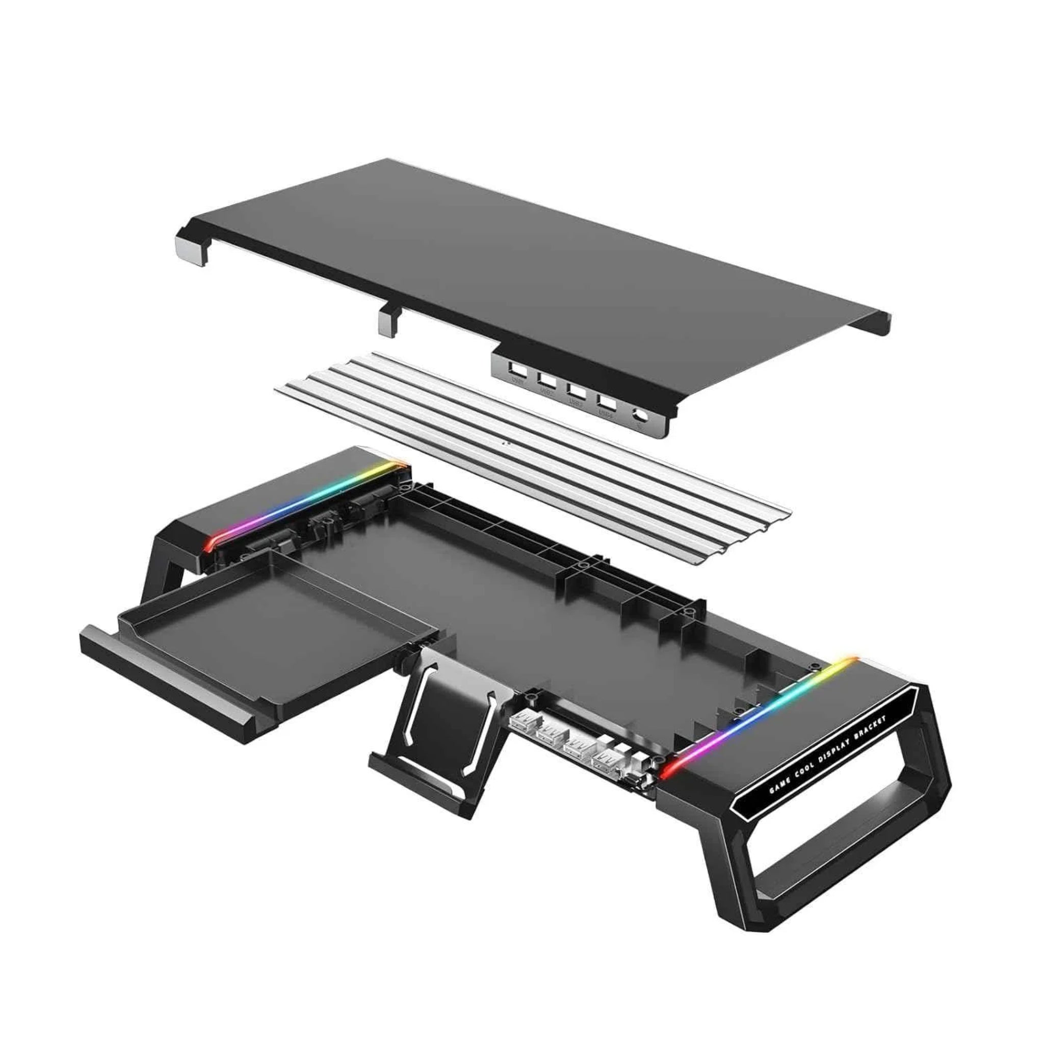 Upgrade your workspace with the Acer Ergo Multifunction Monitor & Laptop Stand, model ZC.A01SI.179. Designed for productivity and style, this stand elevates your monitor or laptop to an ergonomic viewing angle, reducing neck and back strain. Featuring RGB lighting, a 4-port USB hub, and integrated storage space, it’s perfect for creating a clutter-free and modern desk setup for home or office use.